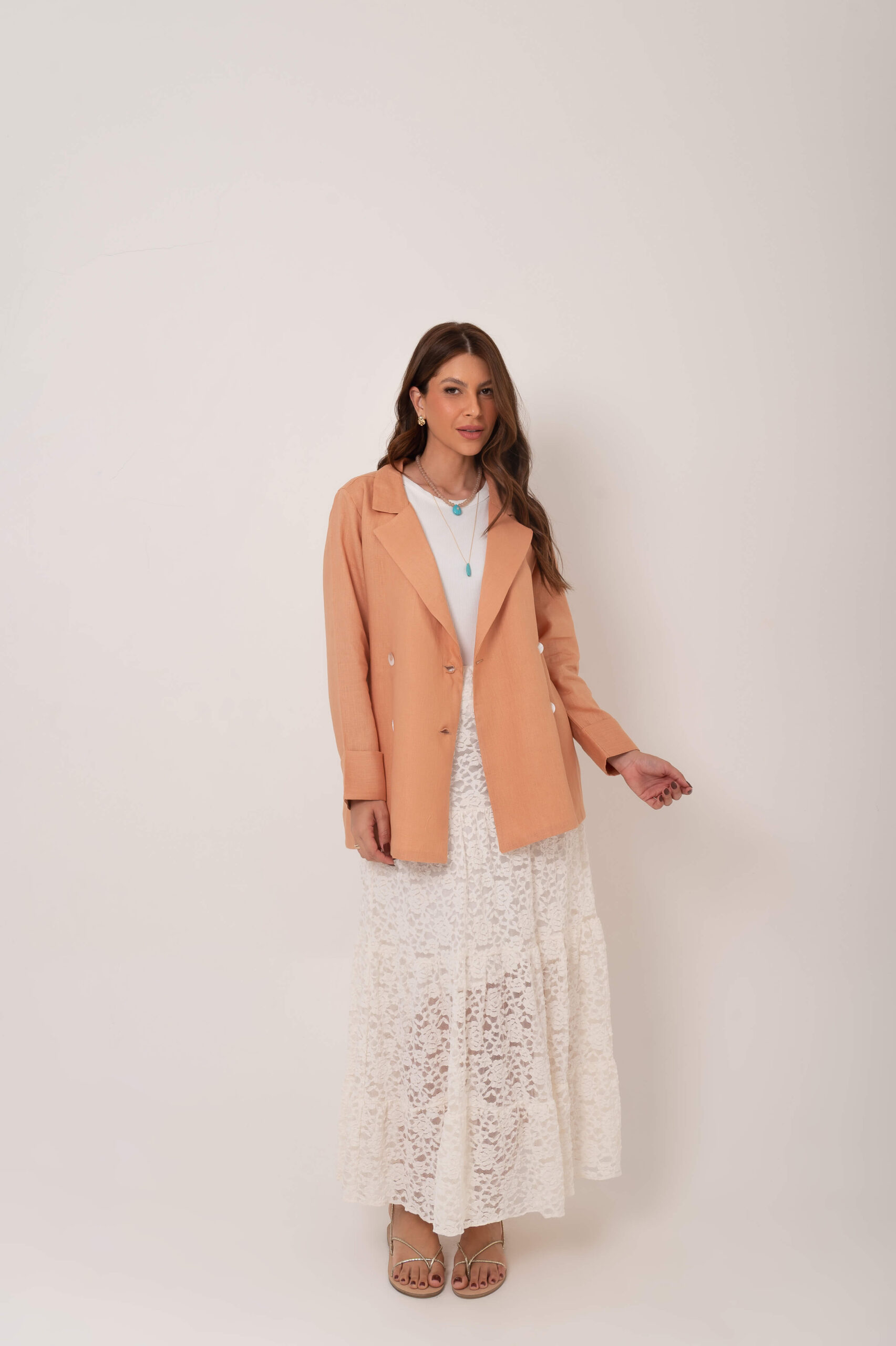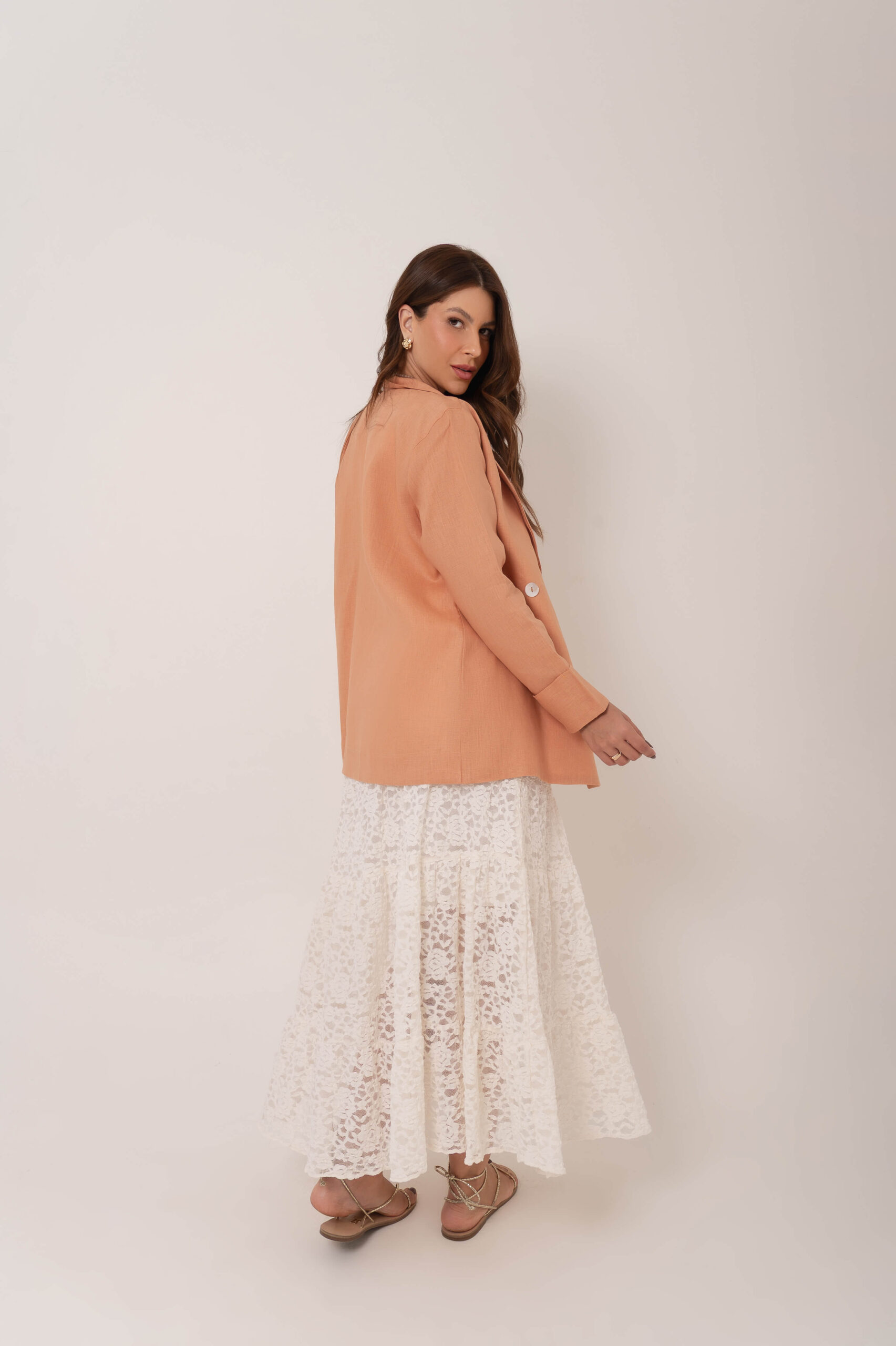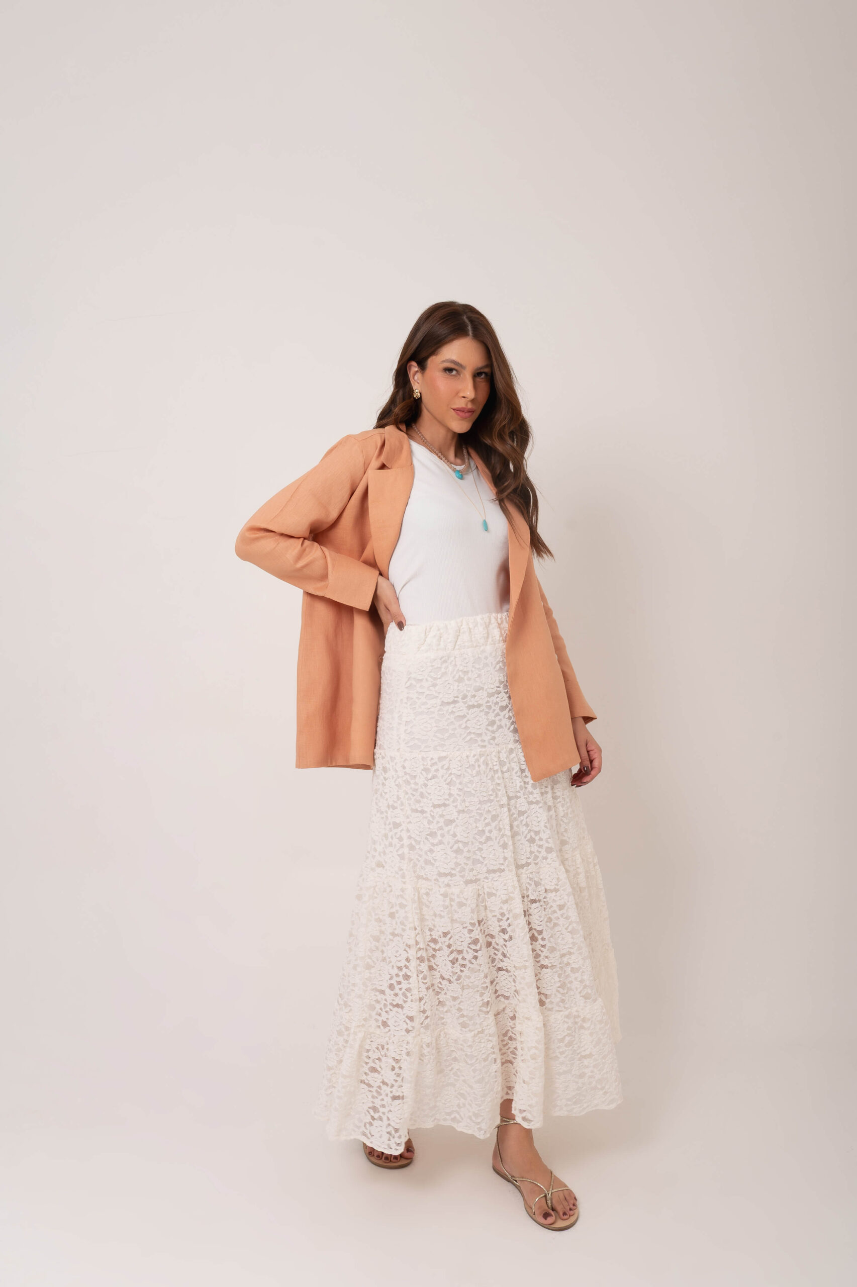 Saia de renda e babados.